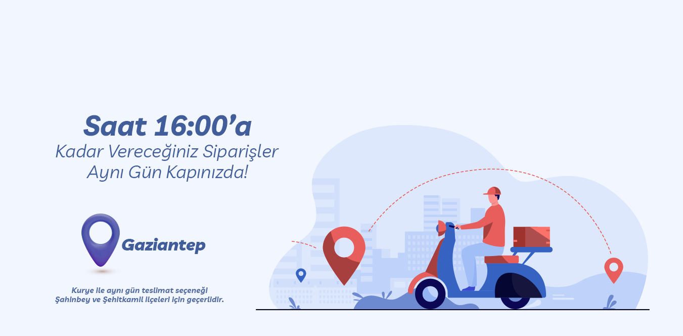*Kurye İle aynı gün teslimat seçeneği, hafta içi oluşturacağınız Şahinbey ve Şehitkamil teslimat adresli siparişler için geçerlidir.